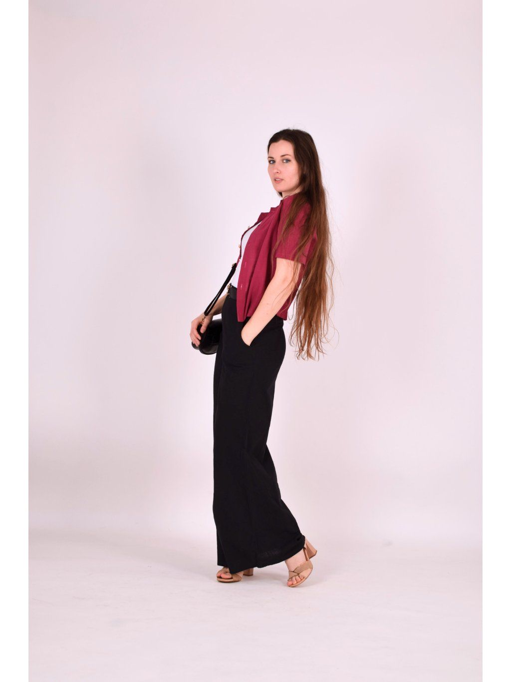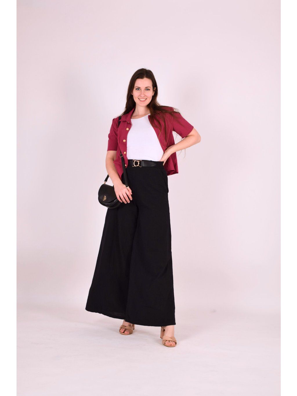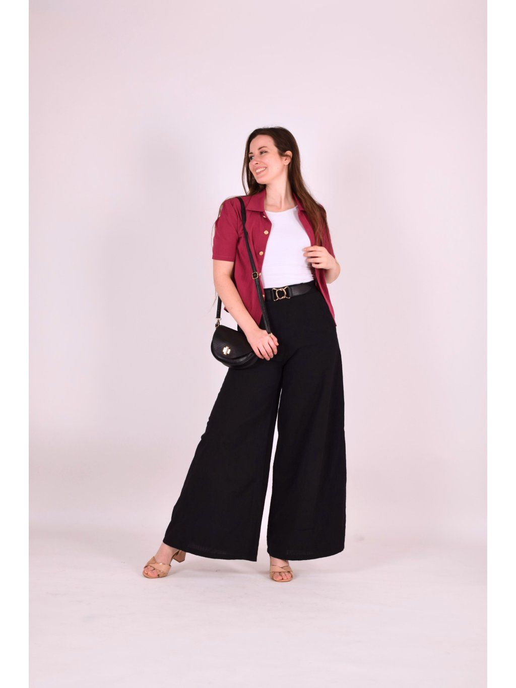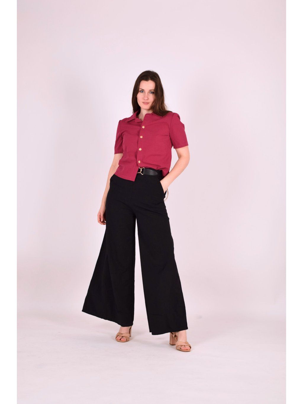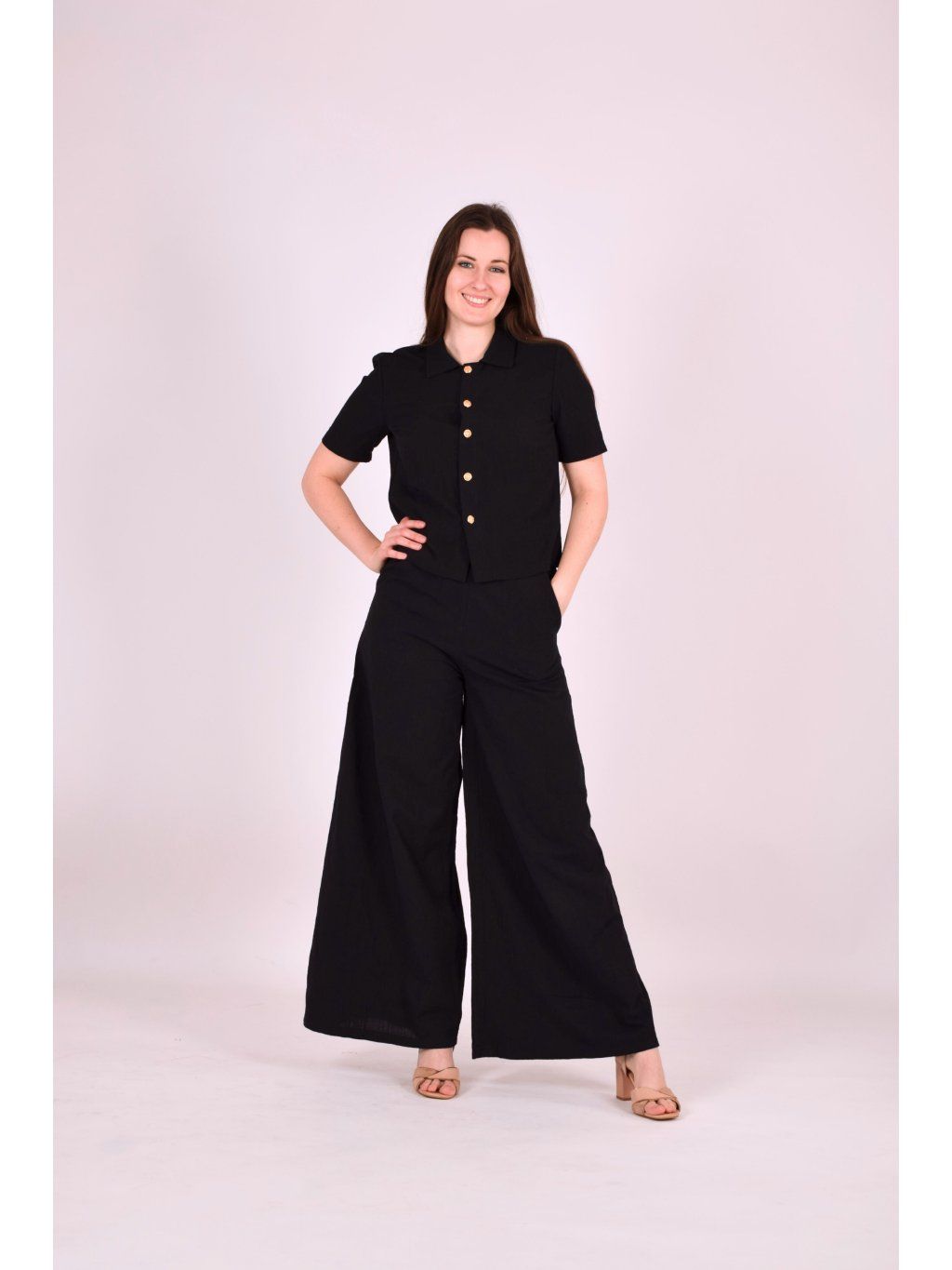 Košile Balen je lehká, elegantní a překvapivě variabilní. Nejkrásněji vynikne v setu s kalhotami ze stejného materiálu, ale skvěle funguje i samostatně – třeba se sukní. Můžete ji nosit zastrčenou pro zvýraznění pasu a ženskou siluetu, volně pro uvolněnější vzhled, nebo rozepnutou jako lehkou vrstvu přes tílko. Je to kousek, se kterým si můžete hrát a vytvářet stále nové stylingy.